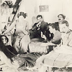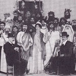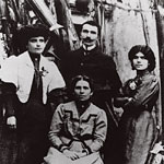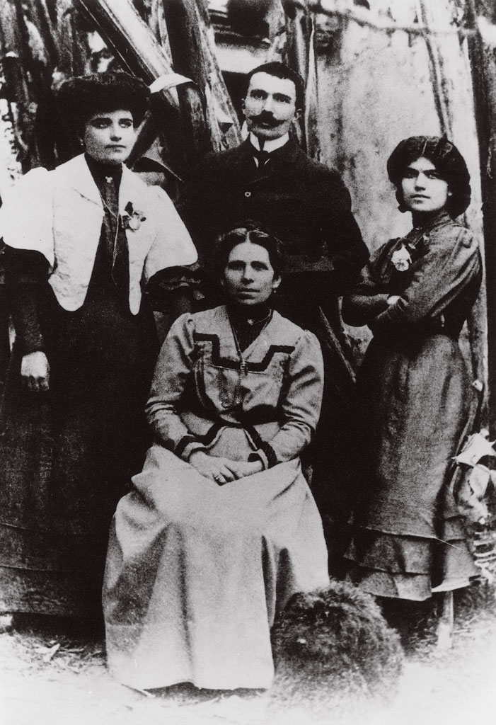 Ο Νίκος Καζαντζάκης στο Ηράκλειο με τη μητέρα του Μαρία (καθήμενη) και τις δυο αδελφές του, την Αναστασία (αριστερά) και την Ελένη. 1905.