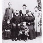 (Όρθιοι, από αριστερά:) Ο Νίκος Καζαντζάκης και οι αδελφές του Αναστασία και Ελένη. (Καθήμενοι:) Ο αδελφός της μητέρας του, Αντώνης Χριστοδουλάκης και η μητέρα του Μαρία. (Καθήμενοι μπροστά:) Τα εξαδέλφια του Άννα και Γεώργιος, τέκνα του Αντώνη Χριστοδουλάκη.
