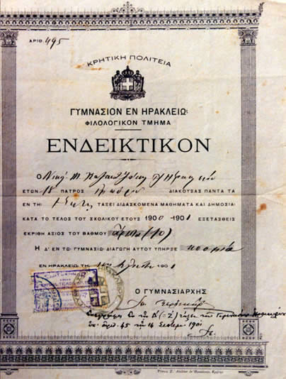 Οι γονείς του Νίκου Καζαντζάκη: Καπετάν Μιχάλης Καζαντζάκης (1856 - Δεκέμβριος 1932) και Μαρία Χριστοδουλάκη († Μάρτιος 1932)