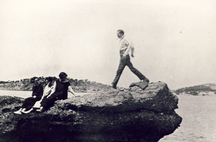 1. Ο Νίκος Καζαντζάκης στη Βουλιαγμένη με τη Γαλάτεια, τη Λιλίκα Νάκου και την Καίτη Παπαϊωάννου. 1920.