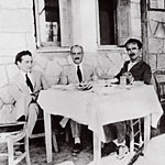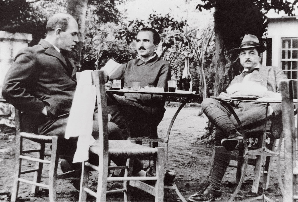 28. Ο Νίκος Καζαντζάκης με τον Παναΐτ Ιστράτι (δεξιά) και τον Θεσσαλονικιό δημοσιογράφο Ν. Καστρινό στη Θεσσαλονίκη. 29.12.1927.