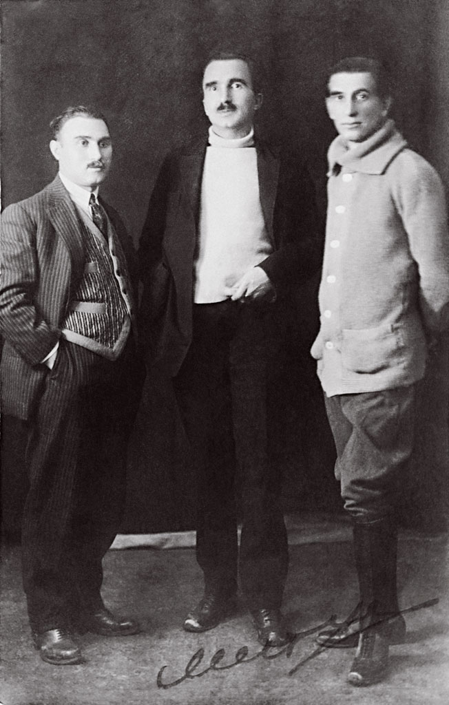 21. Ο Νίκος Καζαντζάκης με την Εντβίγκε Λέβι (Edvige Levi) και τον αδελφό της Ντόρο Λέβι (Doro Levi) στη Φλωρεντία. Οκτώβριος 1926.