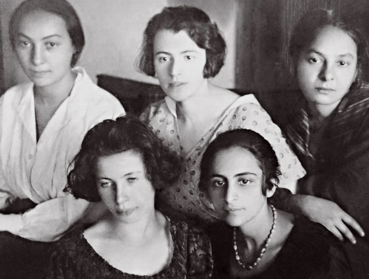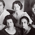 9. Ο «Πύρινος Κύκλος» των γυναικών, φίλων του Νίκου Καζαντζάκη, στο Βερολίνο, κατά τα έτη 1922-1923: Ίτκα Χόροβιτς (Itka Horowitz), Λέα Ντούνκελμπλουμ (Lea Dunkelblum), Ρόζα Σμούλεβιτς (Rosa Schmulewitz), Ντίνα Μάτους (Dina Matus) και Ραχήλ Λίπσταϊν (Rahel Lipstein) (κάτω δεξιά).