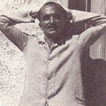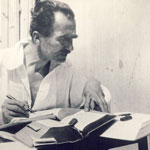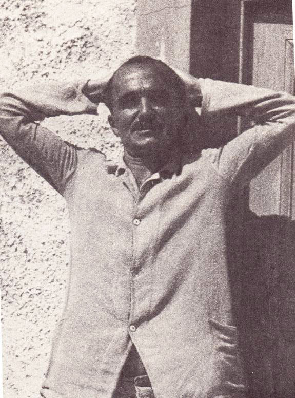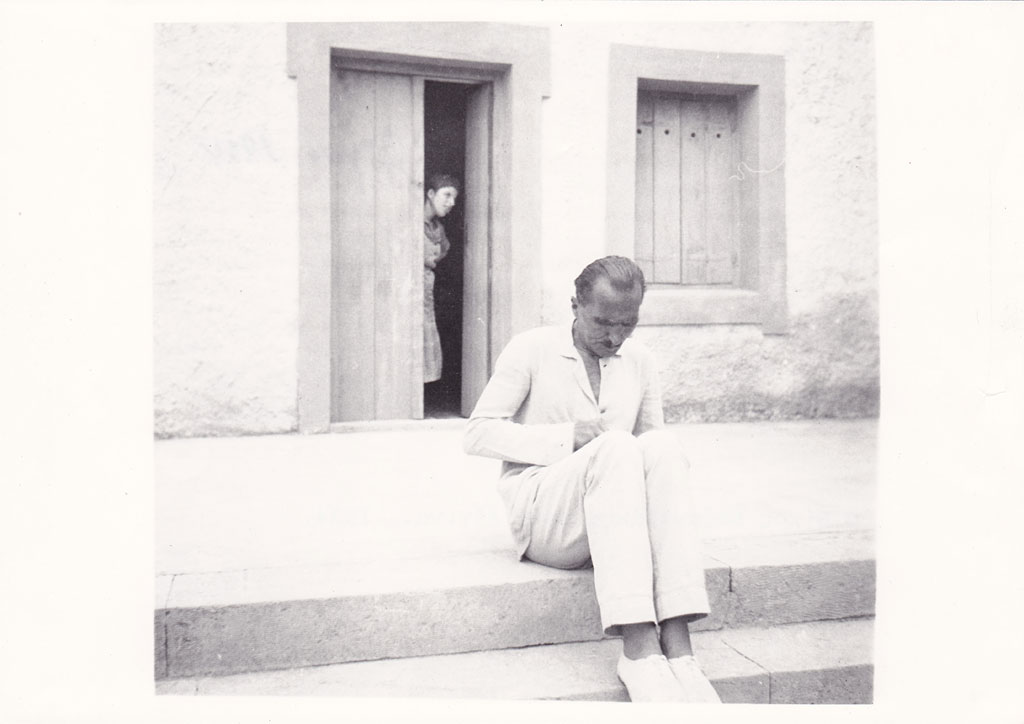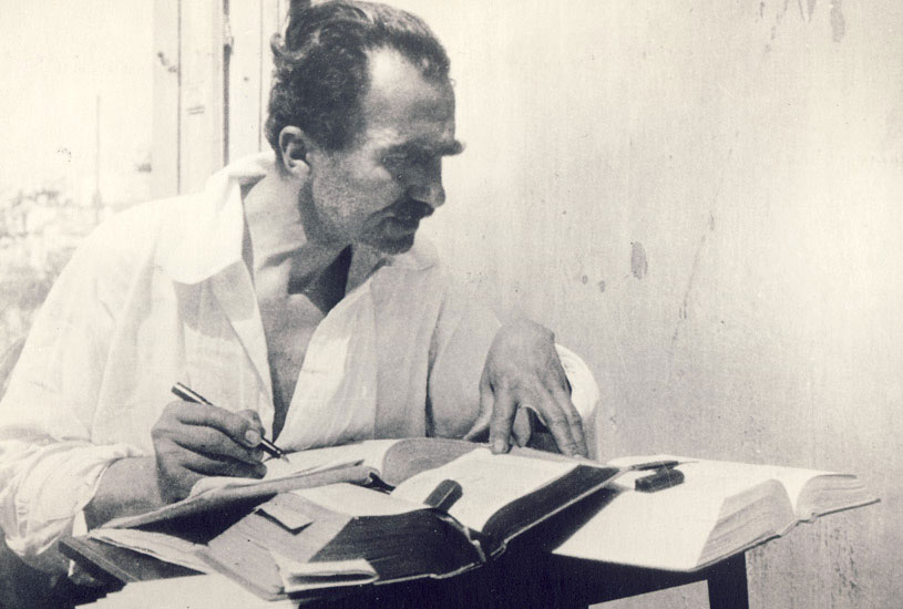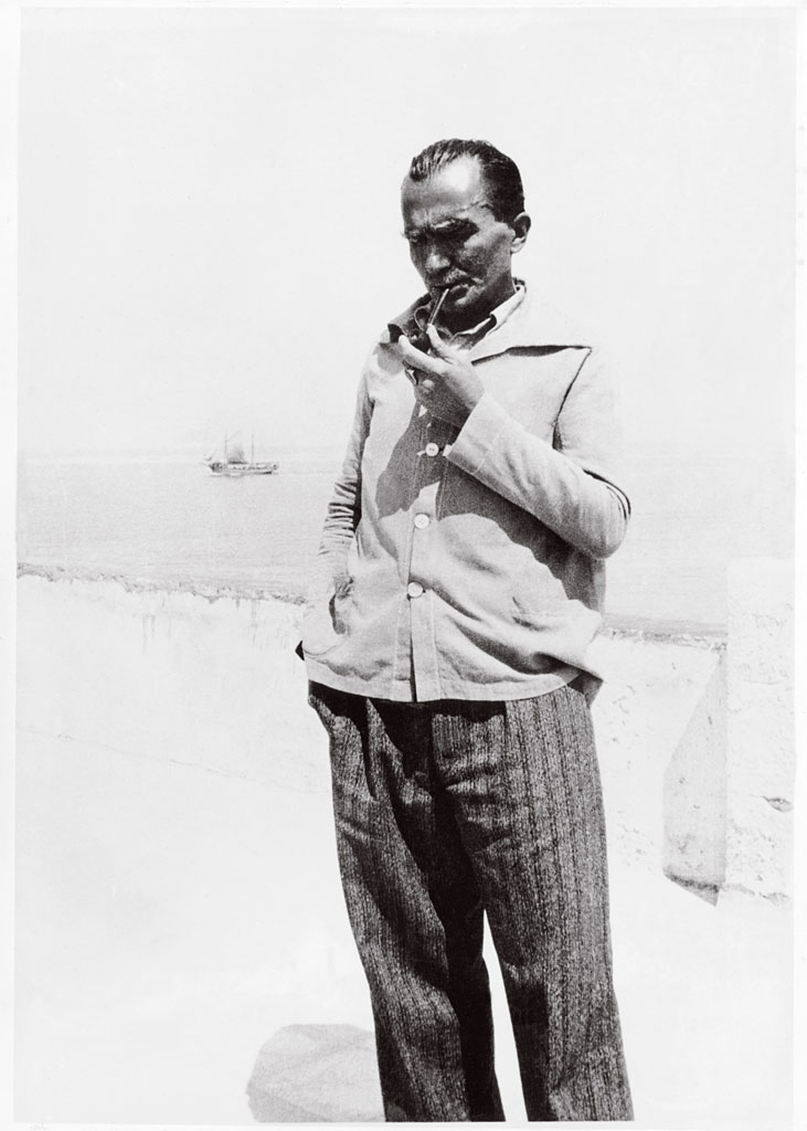 6. Ο Νίκος Καζαντζάκης στο σπίτι του Γιάννη Αγγελάκη στην Αίγινα, συγγράφοντας το Ελληνο-γαλλικό λεξικό στην καθαρεύουσα και στη δημοτική. Άνοιξη 1931.