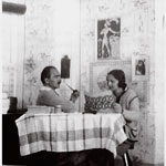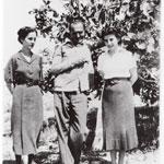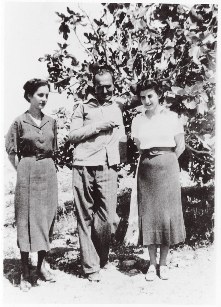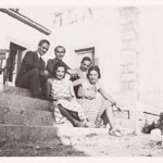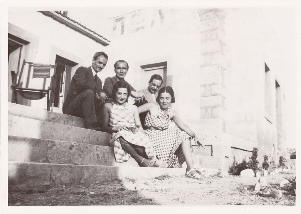 13. Ο Νίκος και η Ελένη Καζαντζάκη στο σπίτι τους στην Αίγινα με τον Α. Μαρσέλο, (δεξιά του), τον Τ. Καλμούχο (αριστερά του) και τη Μαρίκα Χουρμουζίου. 1935.