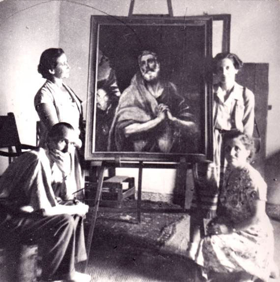 1. Ο Νίκος Καζαντζάκης και η σύζυγός του Ελένη με τις Υβόν Μετράλ (Yvonne Metral) και Λουσιέν Φλερύ (Lucienne Fleury) στο σπίτι τού Ελ Γκρέκο στο Τολέδο. Σεπτέμβριος 1950.