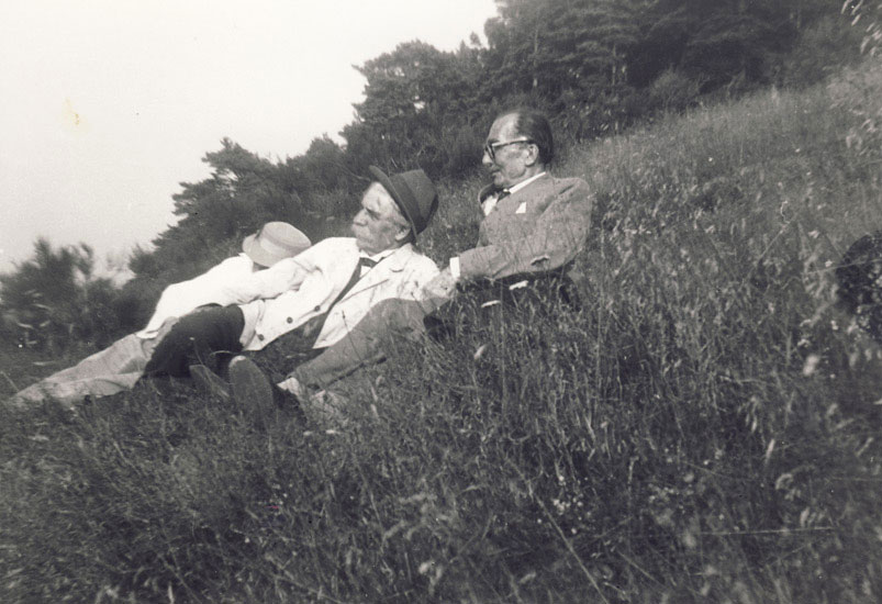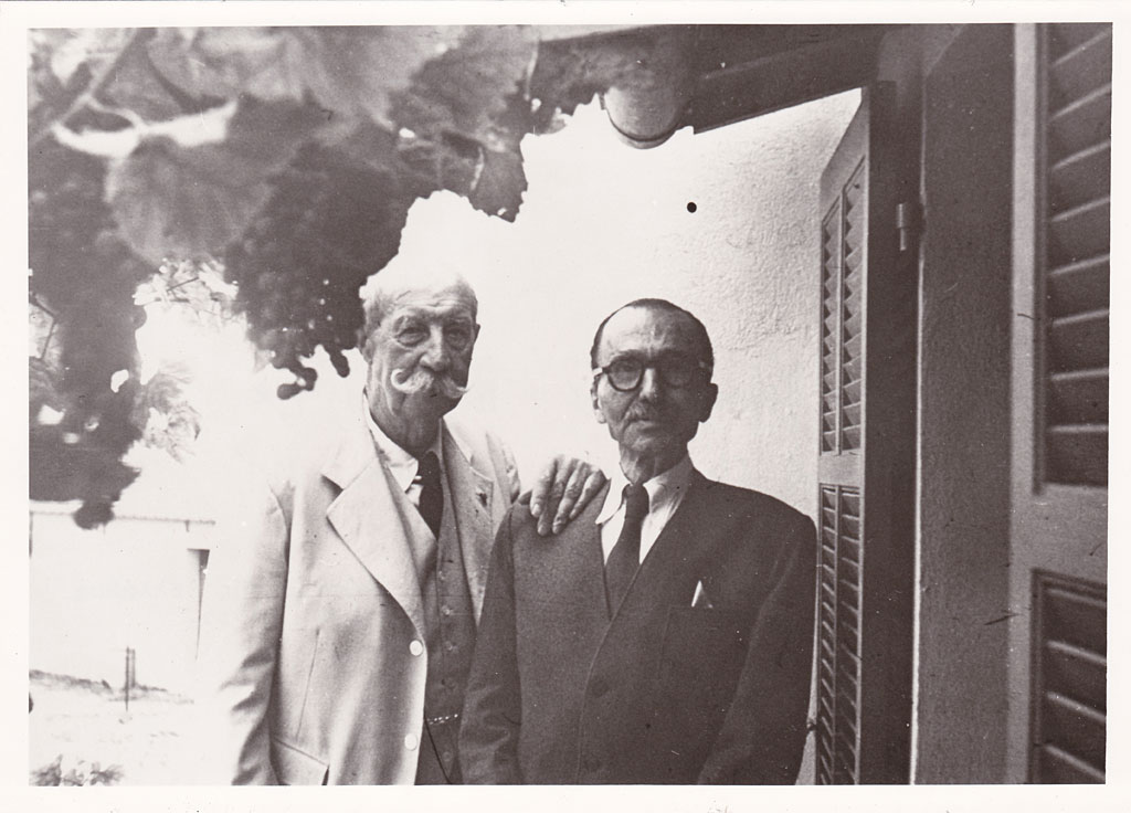 14. Ο Νίκος Καζαντζάκης με τον Πρίγκιπα Γεώργιο στο «κουκούλι» στην Αντίμπ, 24.4.1955.