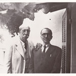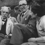 16. Ο Νίκος Καζαντζάκης και η σύζυγός του Ελένη με τον Albert Schweitzer στο Günsbach της Αυστρίας. 11.8.1955.