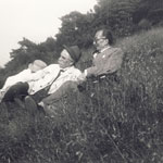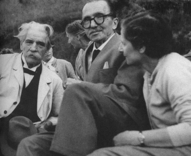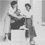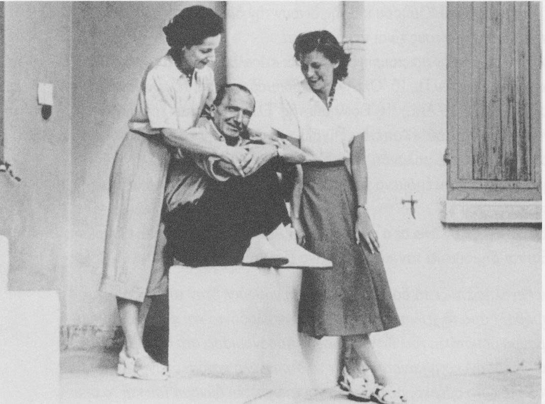 5. Ο Νίκος Καζαντζάκης με τη σύζυγό του Ελένη και την Yvette Renoux (κόρη του Jean Herbert), γραμματέα του στην ΟΥΝΕΣΚΟ, στη βίλλα «Μανολίτα». 1953.