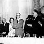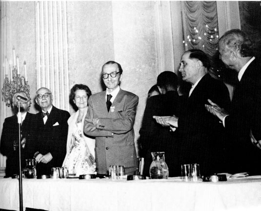17. Από την τελετή στη Βιέννη απονομής στον Νίκο Καζαντζάκη του Βραβείου της Ειρήνης. Δεξιά του, η Ελένη. 28.6.1956.