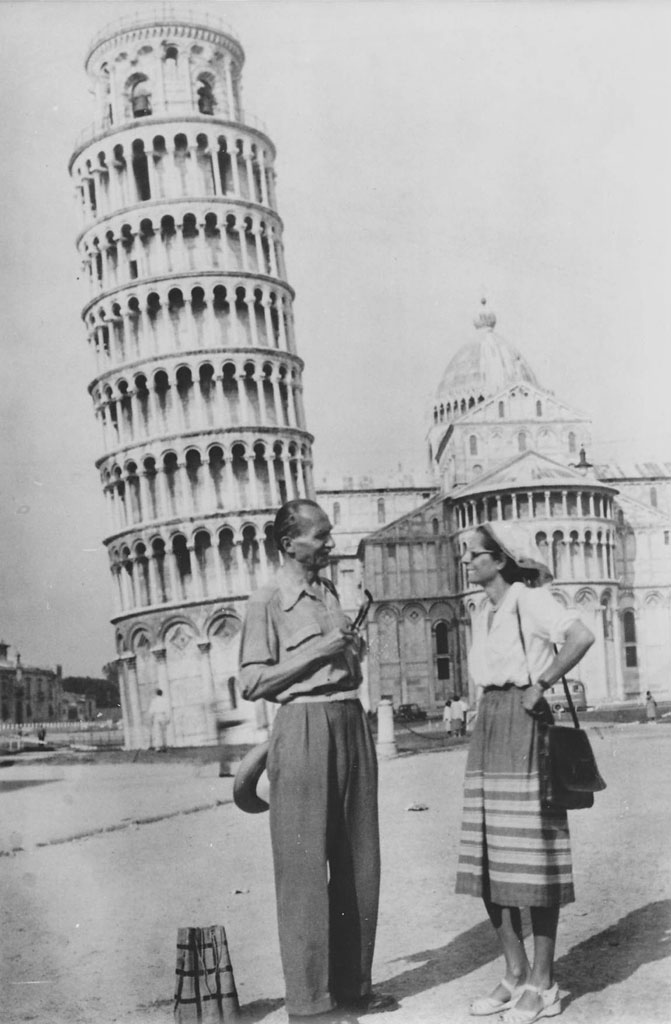 2. Ο Νίκος Καζαντζάκης με τη σύζυγό του Ελένη στην Πίζα. 10.9.1951.