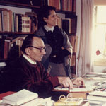 15. Ο Νίκος Καζαντζάκης και η σύζυγός του Ελένη με τον Albert Schweitzer στο Günsbach της Αυστρίας. 11.8.1955.