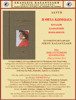 Διαβάστε το Δελτίο Τύπου (.pdf) »Το έργο-σταθμός για τη μετάβαση από τον Μεσαίωνα στην Αναγέννηση, η διαχρονική οδύσσεια του ανθρώπου, από τον ανεπανάληπτο ποιητικό νου και λόγο του Δάντη Αλιγκιέρι, σε έμμετρη ελληνική μετάφραση του Νίκου Καζαντζάκη, ο οποίος κατάρτισε, επίσης: Εισαγωγή στο έργο, Βιογραφικό Σημείωμα του Δάντη, Ανάλυση της Θείας Κωμωδίας, Σχόλια και Λεξιλόγιο.Στη νέα, εμπλουτισμένη επανέκδοσή μας (Μάρτιος-Απρίλιος 2010).