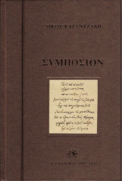 Στο γνωστό από την αρχαιότητα Συμπόσιον, θέμα και αντικείμενο είναι ο έρως. Στο Συμπόσιον του Καζαντζάκη, βασικό θέμα είναι το θείον, η θε(ι)ότης. Η έκδοση του Συμποσίου τον Απρίλιο του 2009 πραγματοποιήθηκε σύμφωνα με το μόνο γνωστό ως υπάρχον χειρόγραφο του έργου, που φυλάσσεται στο Ιστορικό Μουσείο Κρήτης στο Ηράκλειο. Είναι η πρώτη φορά που βιβλίο τού Νίκου Καζαντζάκη εκδίδεται μαζί με το χειρόγραφό του. Στην έκδοση 2009 περιλαμβάνονται, επίσης, δύο Επίμετρα και εικόνες των “συμποσιαστών” και όχι μόνον. Στο πρώτο Επίμετρο ο αναγνώστης θα βρει επιστολή τού Καζαντζάκη σχετική με το Συμπόσιον, προς τον φίλο του Εμμανουήλ Παπαστεφάνου, ενώ στο δεύτερο υπάρχουν σχόλια και πληροφορίες για το έργο από τον Ομότιμο Καθηγητή Φιλοσοφίας τού Πανεπιστημίου Ιωαννίνων Βασίλειο Α. Κύρκο, τον Καθηγητή Γλωσσολογίας στη Φιλοσοφική Σχολή τού Πανεπιστημίου Αθηνών Χριστόφορο Χαραλαμπάκη, και τον Εκδότη των έργων τού Νίκου και της Ελένης Καζαντζάκη και Επιμελητή τού βιβλίου Δρα Πάτροκλο Σταύρου. Διατηρείται και το Σημείωμα του Επιμελητή τής πρώτης έκδοσης (1971) Εμμανουήλ Χ. Κάσδαγλη.